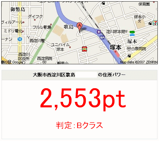 ▲住所を入力することにより「独自の指数」によって「住所パワー」(点数)をつけるというもの。